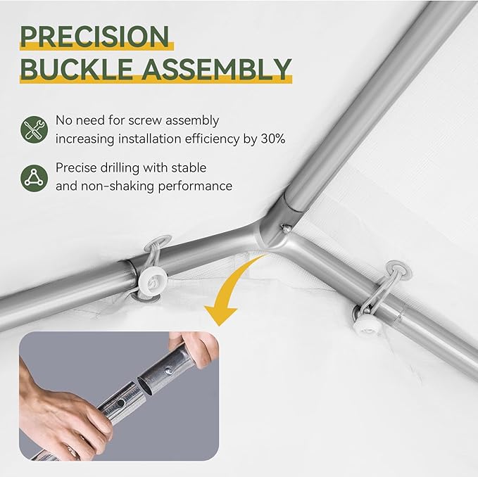 - Quick Tool-Free Assembly: No tools required! Each numbered part connects seamlessly with clear instructions. Set up this carport shelter in minutes, ideal for temporary or semi-permanent storage solutions. Compact yet robust, it’s your go-to hassle-free shelter!