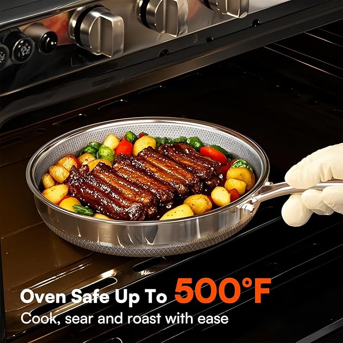 - Works with All Stovetops: the stainless steel pots and pans set is designed for gas, electric, induction, ceramic glass, and halogen cooktops, is also oven safe up to 500°F, adding flexibility to your cooking style