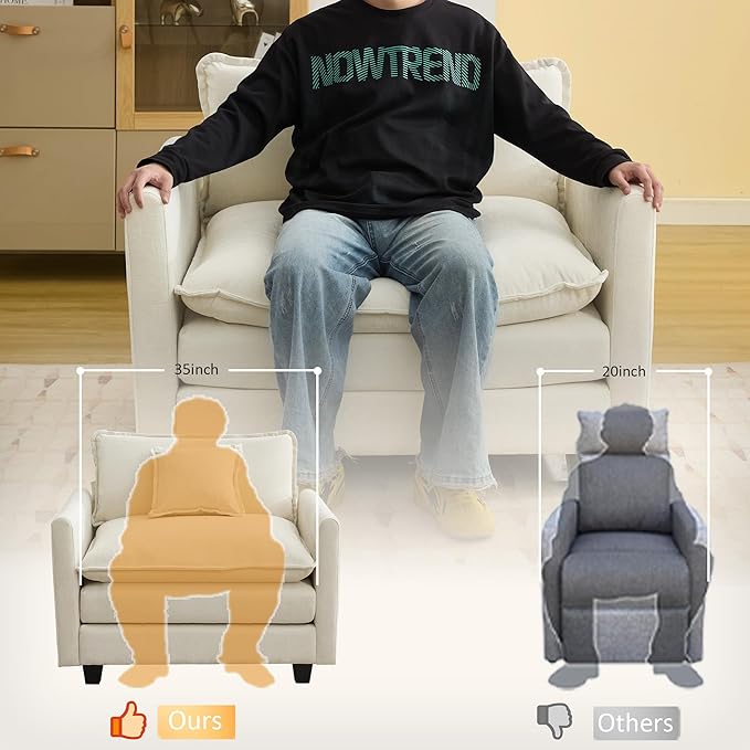 - Spacious Seating Space: With its extra-wide and 35" extra-wide seat design, the oversize chair offers a generous seating space, whether you entertaining guests or enjoying quality time with family, everyone can find a cozy spot on this armchair.