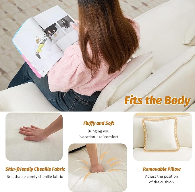 - Premium Materials: The lounge chair is upholstered in premium chenille fabric, It stands up to daily use, scratches, and stains, making it ideal for homes with children or pets. Its spacious design and 11inch thicked comfortable cushions offer a cozy and inviting atmosphere for all your gatherings.