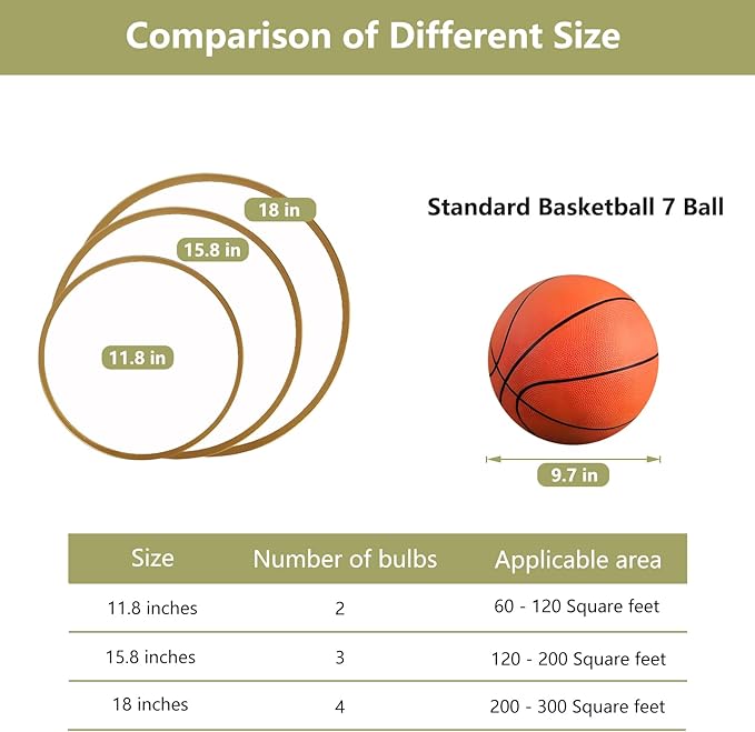 - Size and material:The Light Fixture diameter is 15.8in(40cm). The Fixture Height is 3.54in(9cm). Made of metal and acrylic