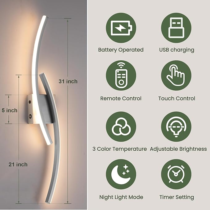 - Versatile Applications for Modern Spaces:The sleek, modern design of our battery-operated wall sconces creates a cozy and inviting atmosphere, making them ideal for a multitude of settings including living rooms, bedrooms, corridors, entryways, hallways, and dining rooms. They represent the ultimate choice for enhancing your home's lighting and décor