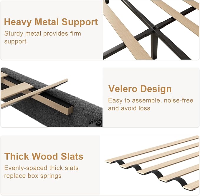 - 【Sturdy Construction】This bed frame is constructed with sturdy legs, a supporting metal frame and solid wood slats, no springs required, which greatly enhances the sturdy stability of the bed