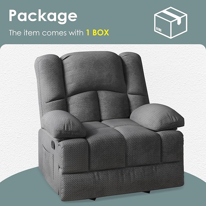 - Spacious Design: This oversized rocker recliner chair features generous dimensions of 40.1" (L) x 38.2" (W) x 40.6" (H), providing ample space for adults to relax comfortably without feeling cramped