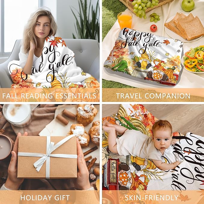 Fall Blanket, Fall Gnome Throw Blanket 50"X60", Autumn Decorations for Home Flannel Thanksgiving, Decorative, Cozy, Warm, Perfect for Bed, Couch, Movie Theater, Gift for Him or Her, Harvest Seasonal