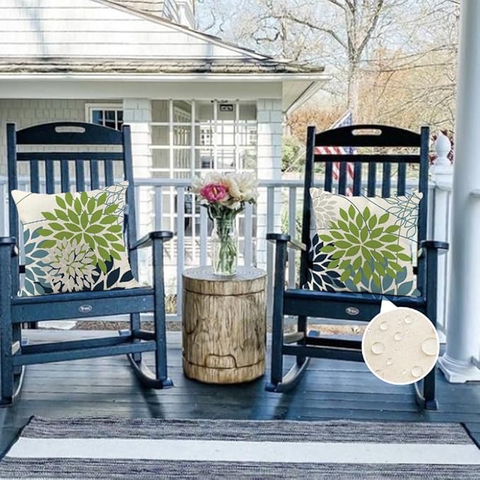RABUSOFA Outdoor Pillow Covers 20x20 Inch Set of 2 Green Blue Flower Decorative Waterproof Spring Summer Floral Outdoor Cushion Covers for Patio Funiture Garden Couch Decor