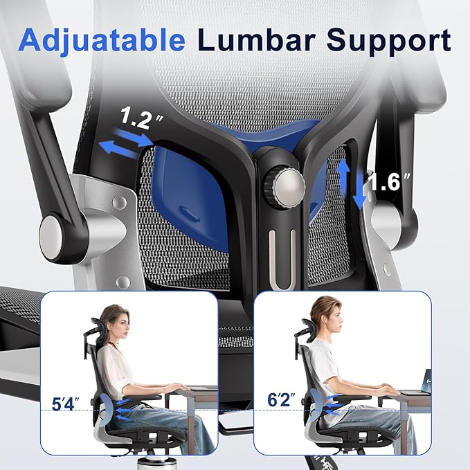 - Adjustable Lumbar Support: This ergonomic office chair is equipped with a lumbar adjustment knob that allows the lumbar cushion to move forward and backward, and it can be moved up and down directly to accommodate users of different heights