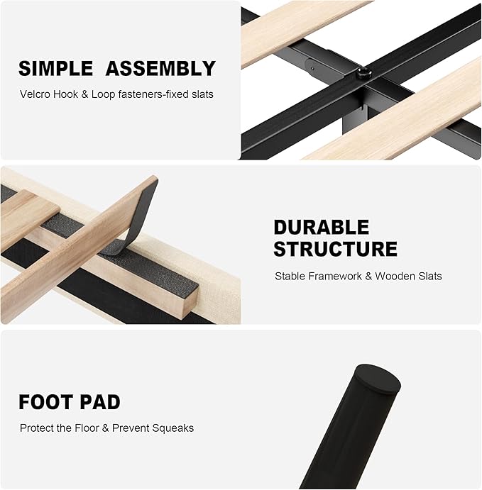 - Hassle-Free Assembly: Each part of this queen bed frame is clearly labeled and all necessary components for assembly are conveniently packed and shipped in one box, making the setup process quick and efficient for a single adult in 30 minutes