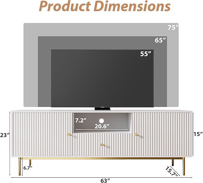 - Modern Design: The TV stand features black, metal legs and a square frame for a unique modern aesthetic. Fluted panel design gives you an eye-catching feeling.