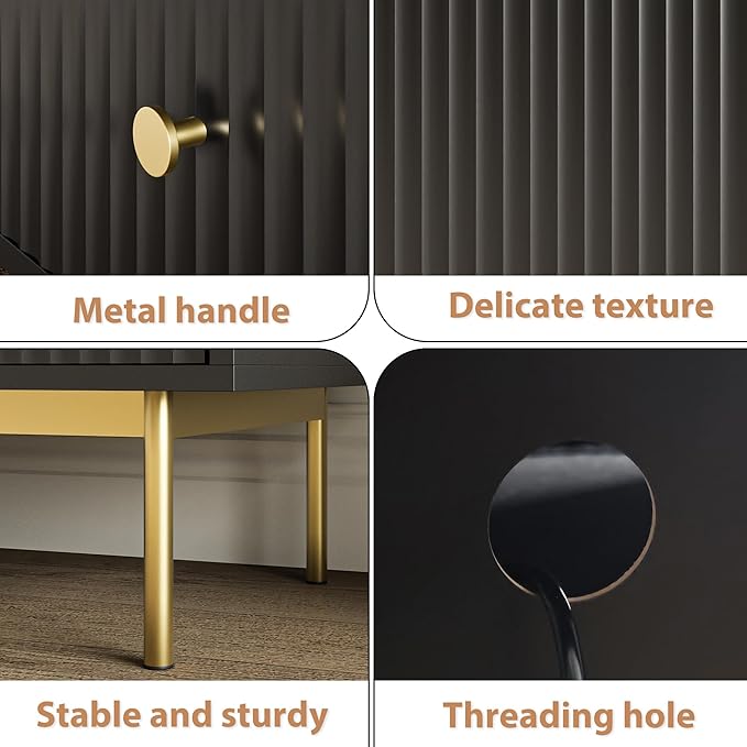 - Modern Design: The TV stand features black, metal legs and a square frame for a unique modern aesthetic. Fluted panel design gives you an eye-catching feeling.