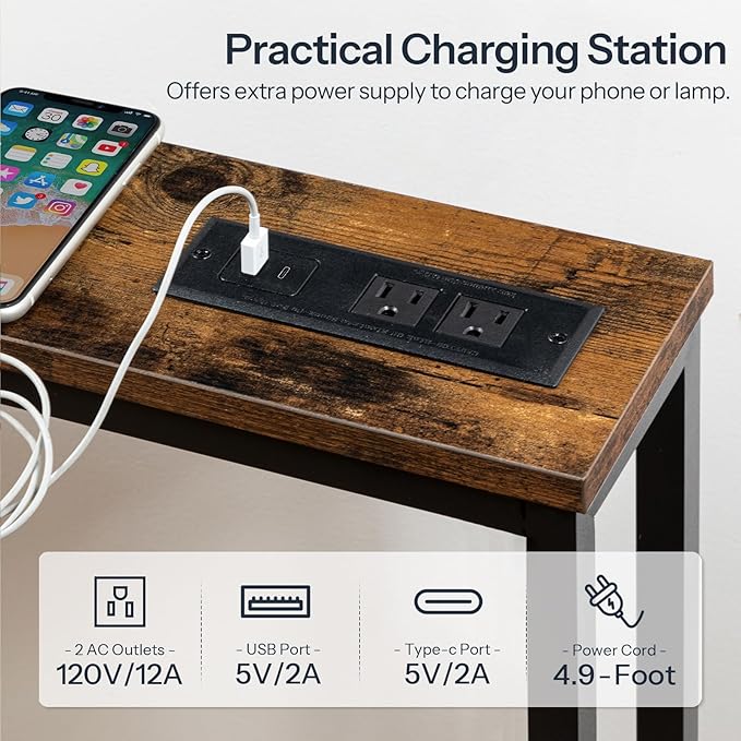 - Behind Couch Table with Outlets: The narrow console table comes with built-in 2 plug outlets, 1 USB port, 1 Type-C port and a 59" long power cord. With all the functions required for charging, the skinny sofa table is ideal for your mobile phone, laptop, desk lamps or tablets