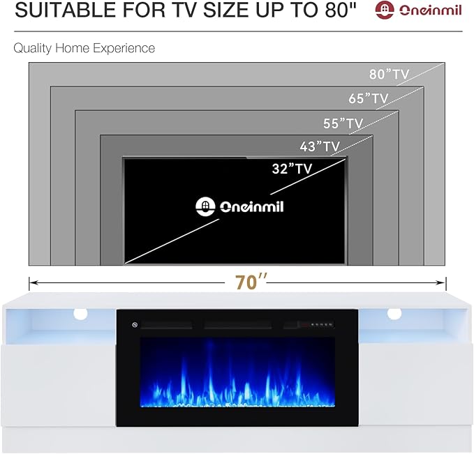 - Easy Installation: The TV stand with fireplace is simple to assemble as we offer illustrated and step-by-step instructions for easy to set up. Besides, all parts you need are clearly numbered for easy identification. Overall dimensions: 70.1”L x 13.8" W x 23.1" H