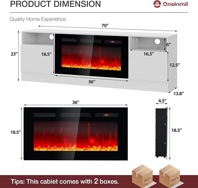 - Included Components : Combine a 70" L × 13.8" W × 23" H TV Stand with a 36" electric fireplace