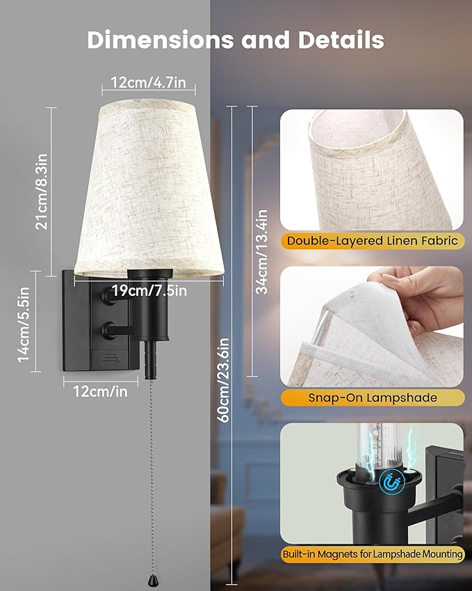 - Detachable Battery Design: The battery is detachable from the bottom of the sconce, no need to remove the shade and bulbs, makes the recharge much more convenient for you