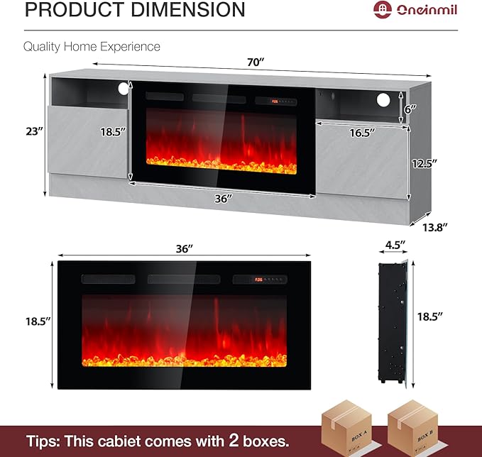 - Included Components : Combine a 70" L × 13.8" W × 23" H TV Stand with a 36" electric fireplace