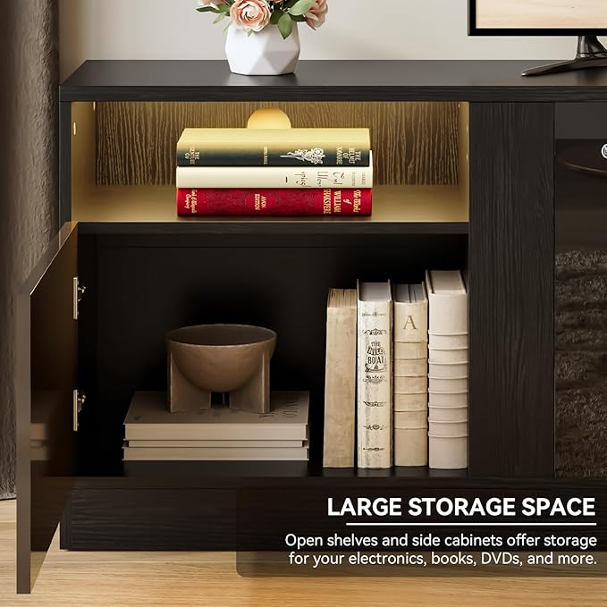 - Ample Storage Space: Featuring a combination of open and closed cabinets, the entertainment center with fireplace is able to provide enough storage space for media devices, gaming consoles, DVDs, and other accessories