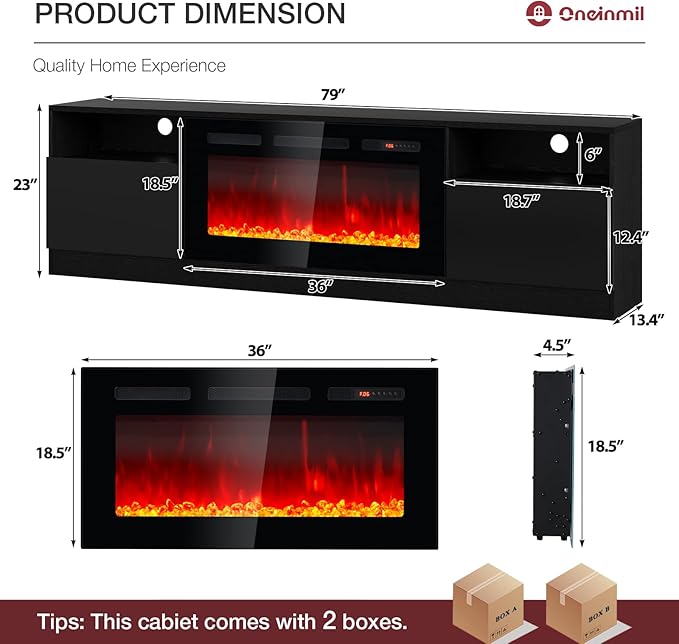 - Easy Installation: The TV stand with fireplace is simple to assemble as we offer illustrated and step-by-step instructions for easy to set up. Besides, all parts you need are clearly numbered for easy identification. Overall dimensions: 78.7”L x 14.0" W x 9.1" H