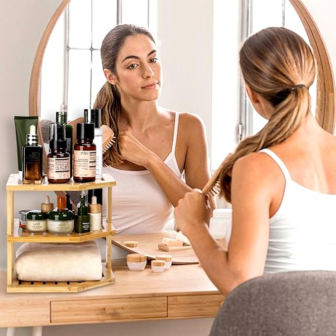 - SIMPLE AND STYLISH BAMBOO DESIGN: This Small Corner Shelf is Made of Eco-Friendly Bamboo, Fashionable and Atmospheric Stable Structure is Suitable for Tableware Organization, Kitchen Corner Shelf