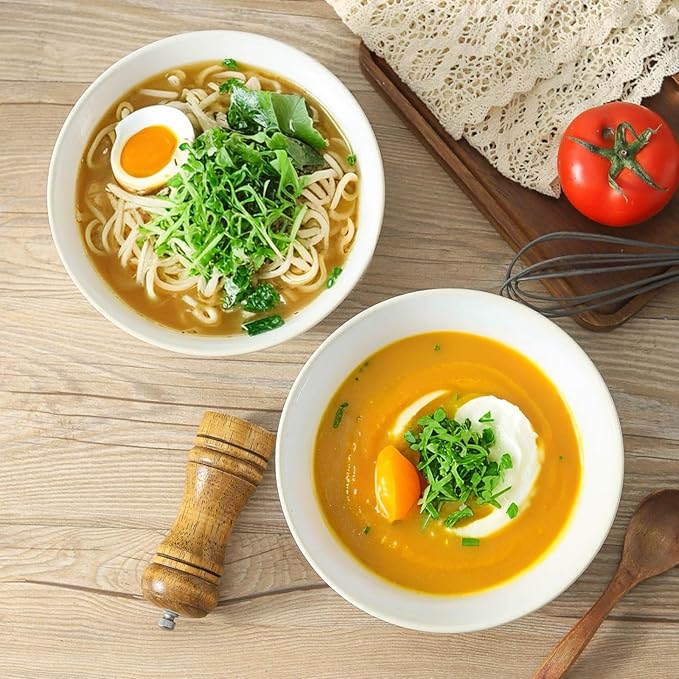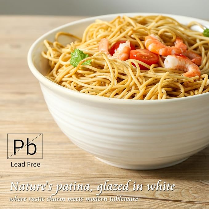 - Artisan White Glaze with Natural Charm: Each bowl in this set features our unque ceramic glaze that subtly reveals earthy clay undertones - a beautiful kiln-fired effect adding organic warmth to your dining experience, while being completely food-safe and non-toxic