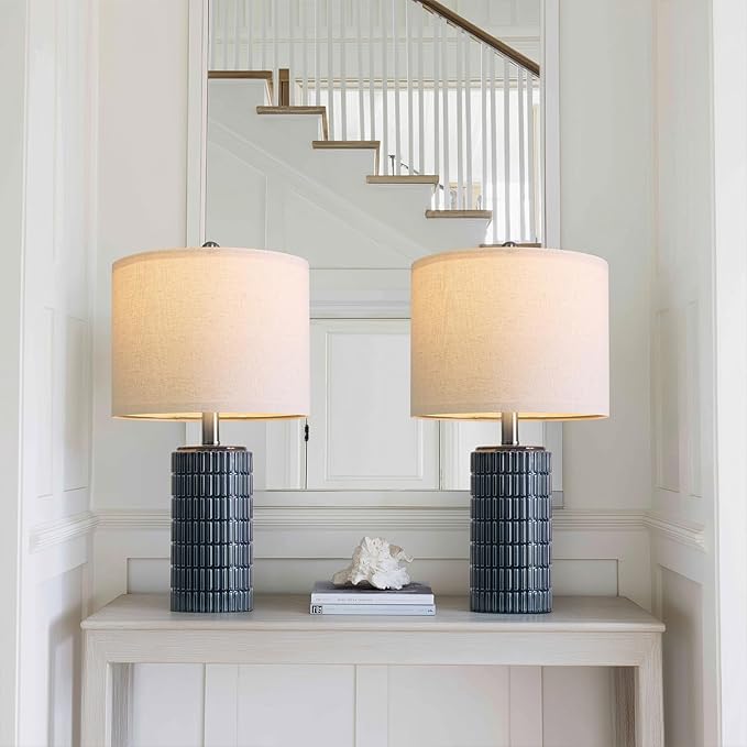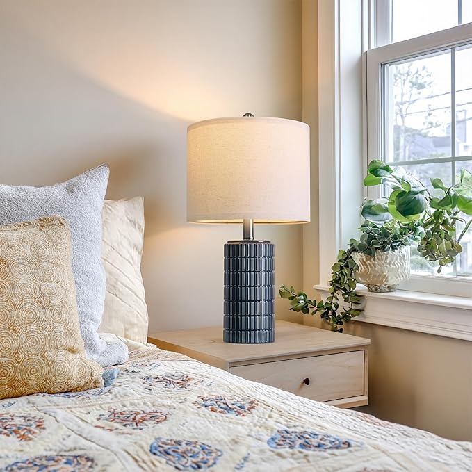 - Small Dark Blue Design: This farmhouse design that exudes simplicity and elegance is perfect for decoration. , end table, side table, table top, console table in living rooms, Hallway, home offices, desk, study room or guest room. This lamps for night stands timeless style makes it the ideal choice for those seeking a high-quality, modern lamp for living room that complements any space.