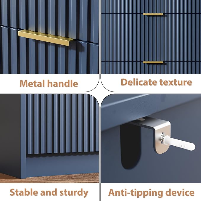 - Safety & Stability: Our fluted dresser features a dual anti-slip design, ensuring drawers stay securely in place, while anti-tipping straps provide added stability. The reinforced base and smooth damping system enhance structural integrity, offering reliable support for everyday storage needs.