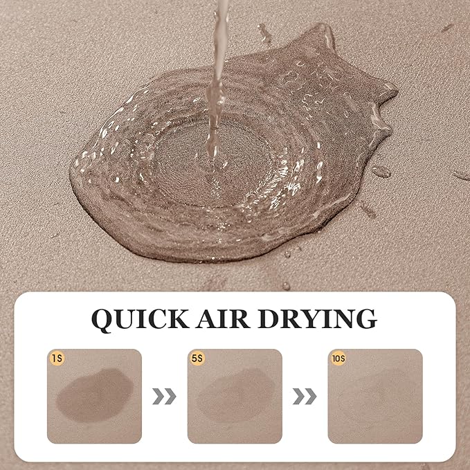 - Super Absorbent & Quick Drying: Crafted with premium hairless suede, this super absorbent bath mat rapidly soaks up spilled water, the thin bath mat keeps the bathroom floor dry at all times, providing daily bathing safety