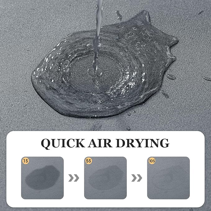 - Super Absorbent & Quick Drying: Crafted with premium hairless suede, this super absorbent bath mat rapidly soaks up spilled water, the thin bath mat keeps the bathroom floor dry at all times, providing daily bathing safety