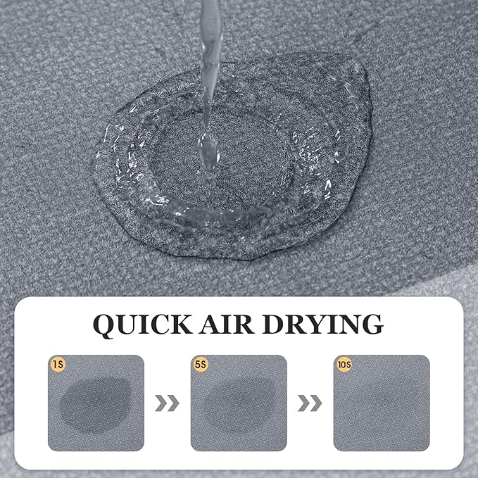 - Super Absorbent & Quick Drying: Crafted with premium hairless suede, this super absorbent bath mat rapidly soaks up spilled water, the thin bath mat keeps the bathroom floor dry at all times, providing reliable protection for daily bathing safety.