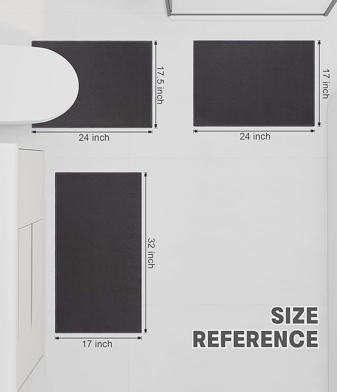 YIHOUSE Bathroom Rug Sets 3 Piece, Ultra Thin Bath Mat Fit Under Door, Quick Dry Absorbent Bath Mat for Bathroom Non Slip Machine Washable Floor Mat (Dark Grey, 3 Piece)