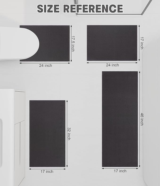YIHOUSE Bathroom Rug Sets 4 Piece, Ultra Thin Bath Mat Fit Under Door, Quick Dry Absorbent Bath Mat for Bathroom Non Slip Machine Washable Floor Mat (Dark Grey, 4 Piece)
