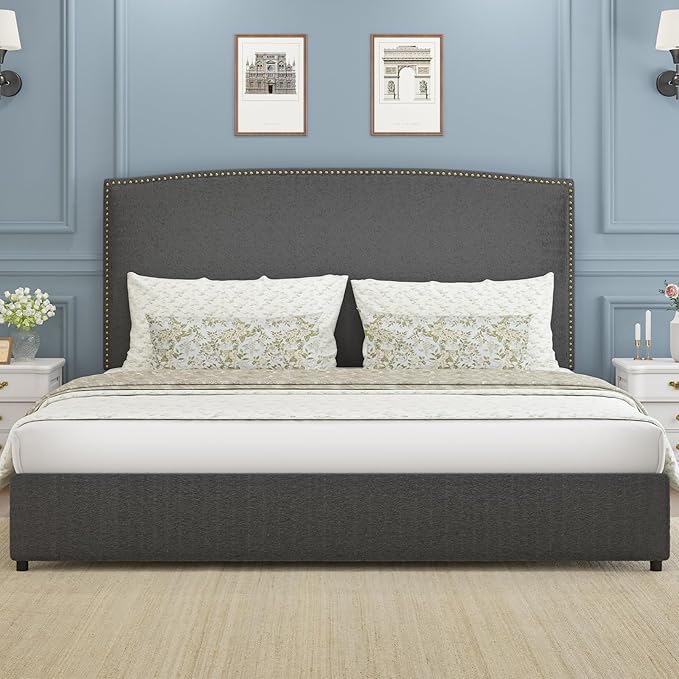 - Mid-Century Modern Elegance: This king platform bed frames features a smooth, full-back headboard and nail head decoration, which can enhance the aesthetics of your bedroom. The understated legs offer stable support while complementing contemporary or retro decorative styles