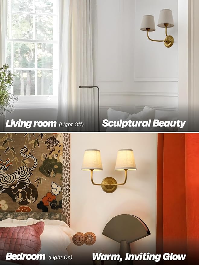 - Unique Gooseneck Arm Design: This 2-heads sconce wall lighting provides an artistic ambiance blend of vintage charm and modern appeal. The fabric shades do wonders to soften the light, making any space instantly more inviting. It's clean lines, make it appropriate for any room in the home decor