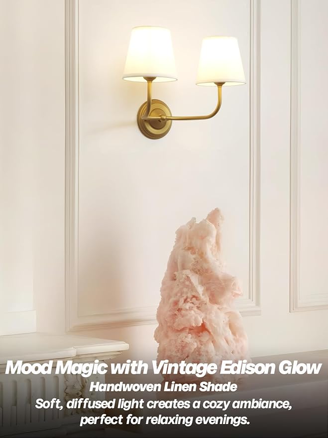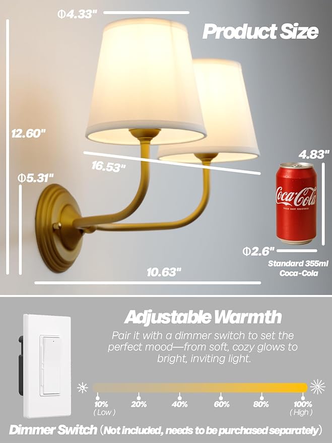 - Premium Quality: Well manufactured with good quality materials. Plating craft brass lampholder and hand made fabric shades which makes the wall sconce more durable and anti-dust
