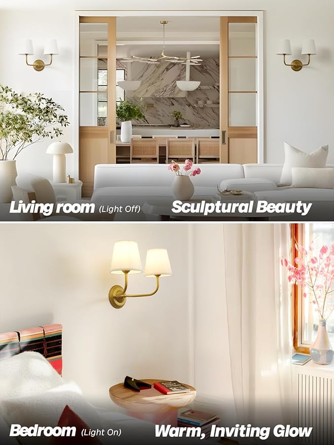 - Unique Gooseneck Arm Design: This 2-heads sconce wall lighting provides an artistic ambiance blend of vintage charm and modern appeal. The fabric shades do wonders to soften the light, making any space instantly more inviting. It's clean lines, make it appropriate for any room in the home decor