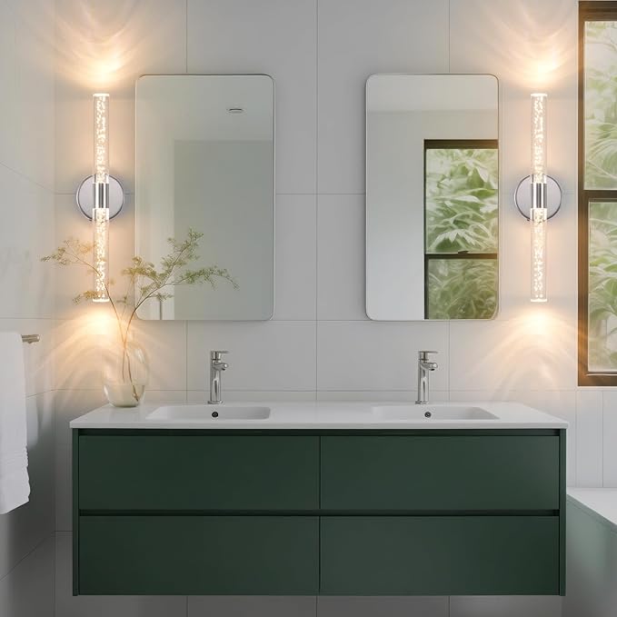 - Unique Acrylic Bubble Lamp Post: Bubble Wall Sconces set of 2 wireless features a metal Chrome finish with a high translucent acrylic round post, mimicking the appearance of crystal bubbles encased in ice. highlights the high quality of the wall sconces fixture. LED Chip reflect unique light effects, This design offers a distinctive visual experience, enhancing the ambiance of any space.