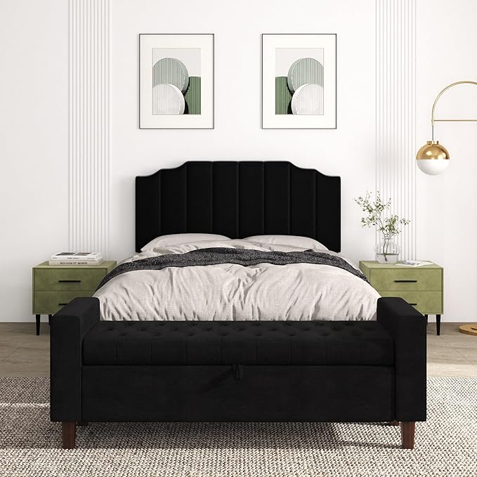 Queen Size Headboard Only, Velvet Wall Mounted Headboard Queen Size for Adjustable Bed, Modern Vertical Channel Design with Curved Tufted Upholstered Head Board and Luxury Soft Padded, Black