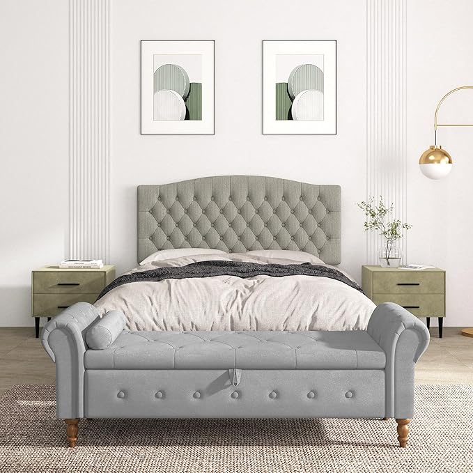 - MODERN DESIGN: This queen size headboard with hand-pulled tufted button and united style legs, and fine details such as soft smooth touch and curved-flowing elegant top adds a unique and plush aesthetic to any bedroom decor