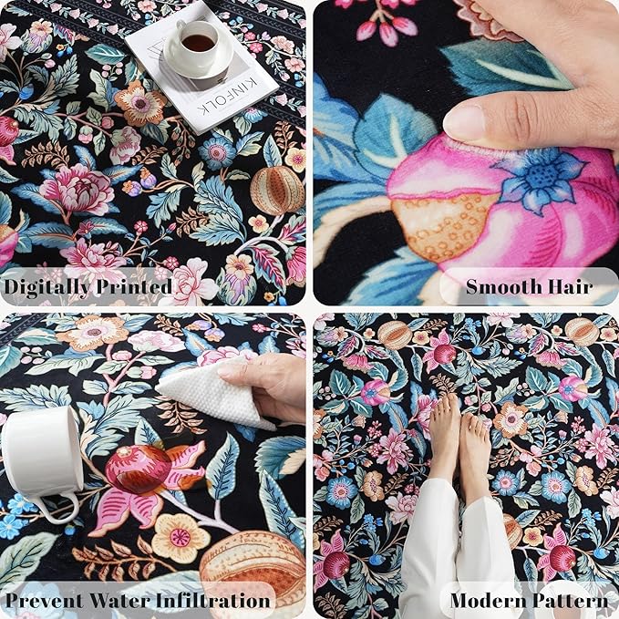 - Vintage Floral Rug—This rug woven by machine, the vibrant-inspired design is digitally printed which details can't be replicated by hand. Vibrant animal carpet patterns intriguing adorn the spaces in your home, including the living room, bedroom, dining room, entryway, children's playroom, home office, kitchen, and more.