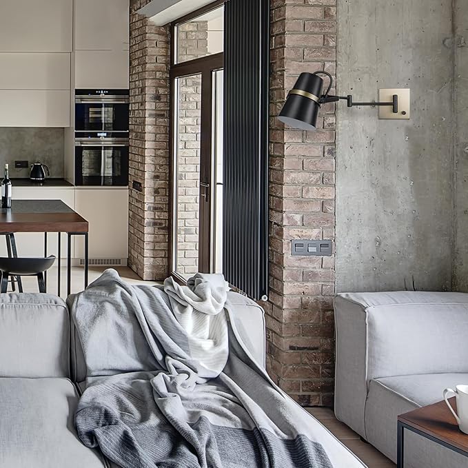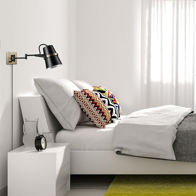- LIGHT YOUR HOME IN STYLE: matte black, brass accents and an ultra-functional swing arm are a stylish way to light any space in your home - swing the arm from side to side to adjust to all your lighting needs