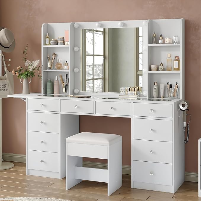 - Excellent Gift: With comprehensive functionality and elegant appearance, this makeup table is popular with women of all ages; Perfect as a birthday, Christmas, New Year's, graduation and other gifts for your girlfriend, wife, mother, daughter