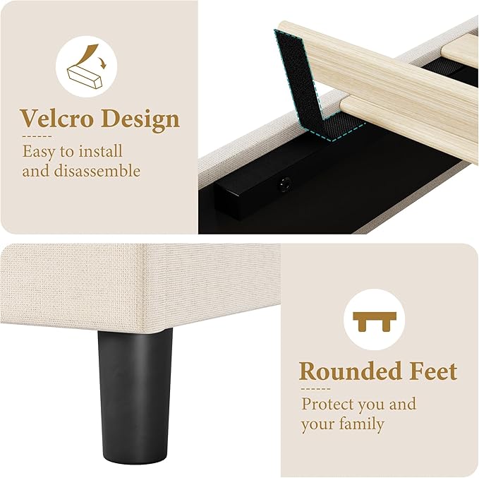- 【No Box Spring Needed】: Enjoy simple assembly with our velcro wooden slats, which prevent the mattress from sliding around. Whether you opt for a memory foam or spring mattress, this bed frame eliminates the need for a box spring, making setup effortless and convenient