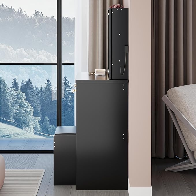 - Modern Sliding Mirror and Smooth Drawers: The mirror slides easily to reveal hidden storage, while the drawers glide smoothly for daily convenience—making it a modern vanity with drawers that blends style with functionality.