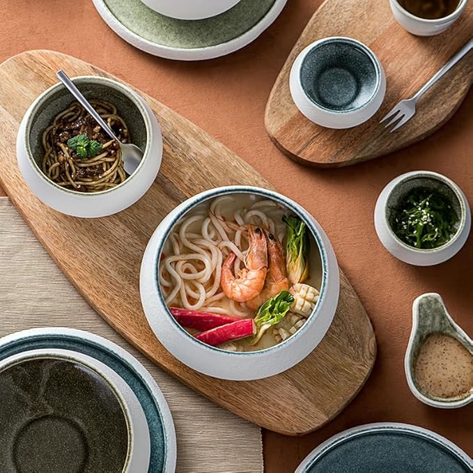 - STUNING & EXQUISITE GLAZE:The testure matte white outside with glossy glaze inside technique gives this kitchen dishware fun and artsy.Breaks from tradition to bring an unexpected look to the tabletop.