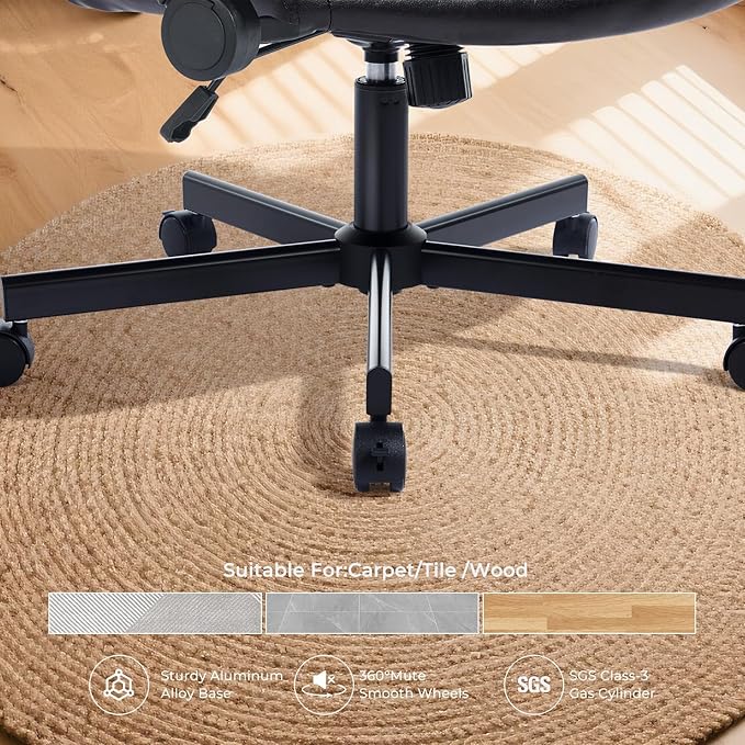 - Sturdy and Durable:Reinforced metal base, SGS Level-3 gas lift, and explosion-proof tilt mechanism ensure stability and safety for users up to 330 lbs.