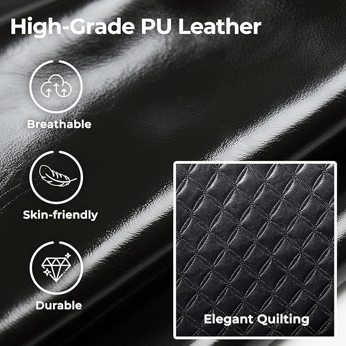 - Embossed Leather:The exquisite stitching and embossing add a touch of elegance to the chair, while the high-quality vinyl leather is durable and soft, supple,easy to maintain,breathable and waterproof.