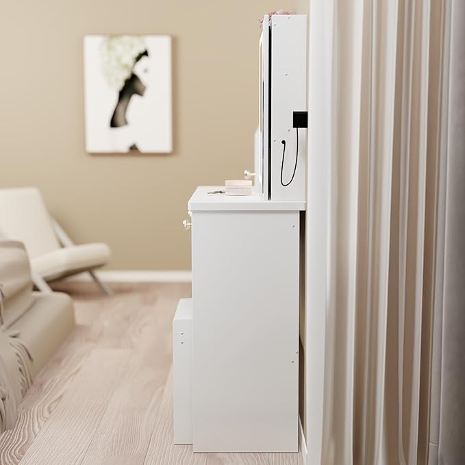 - Space-Saving Design: Sized at 29.2" wide and 50.4" high, this compact vanity with storage is perfect for small bedrooms. Best suited for users under 5.5 feet tall—ideal for teens and petite adults.