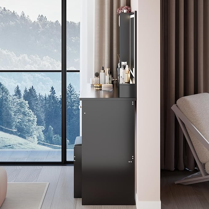 - Modern Design with Smooth Drawers: Crafted with functionality in mind, this modern vanity with drawers offers easy-glide storage for your makeup, jewelry, or skincare essentials—blending elegance with daily convenience.