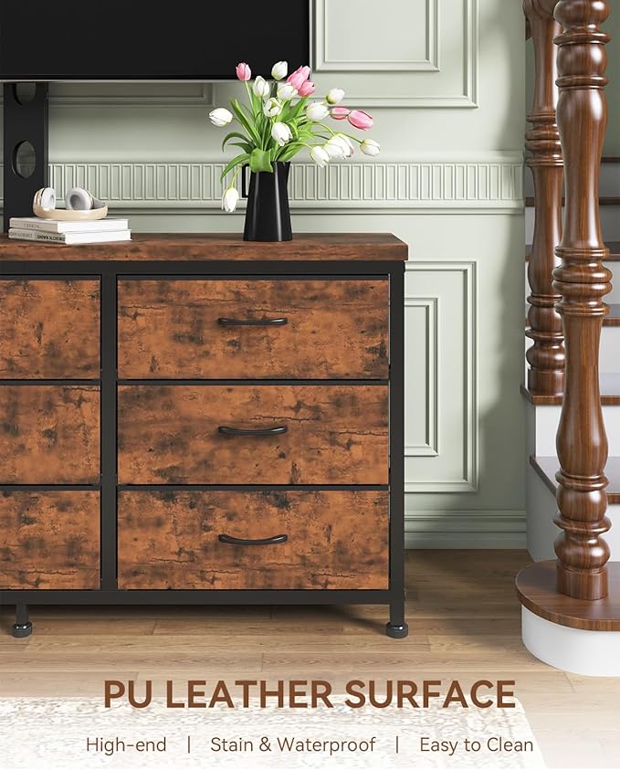 - Ample Storage with 9 Fabric Drawers Dresser TV Stand: Say goodbye to clutter! This unit features nine easy-pull fabric drawers, ideal for organizing remotes, games, devices, and accessories. offers a practical solution for storing and organizing various items, keeping them easily accessible, and ensuring a clutter-free environment.