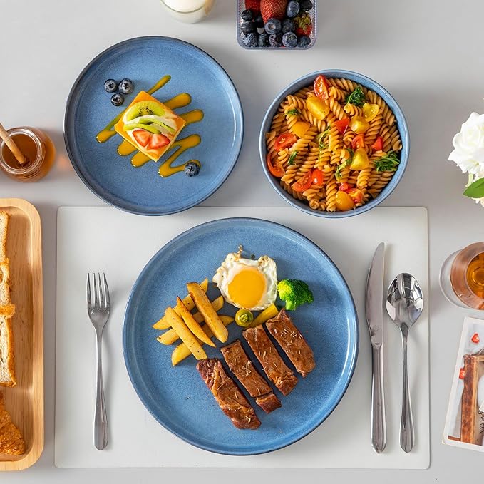 - 【Durable & Scratch-Resistant Stoneware】Made from high-fired stoneware, this set is strong, chip-resistant, and built to last. It resists wear and tear from daily use while maintaining its elegant appearance over time.