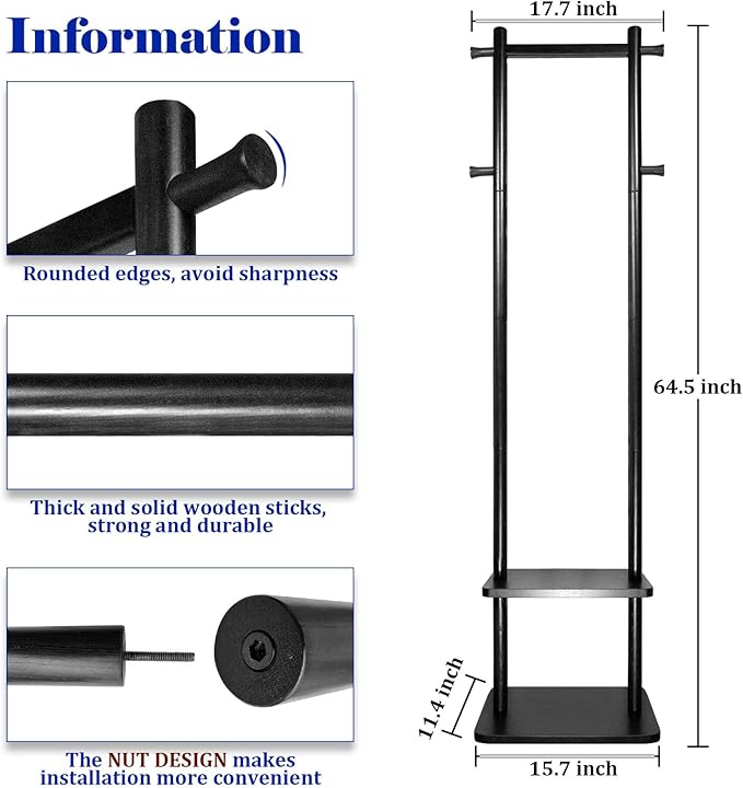 - Stable and Sturdy:Made of high-quality wood,base reinforcement and thickening,this coat rack can withstand daily use and lasts for years